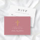 Religious Cross Dusty Pink Girl First Communion RSVP Card