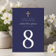 Custom Religious Cross Navy Blue Boy First Communion Table Number.