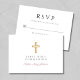 Religious Cross Pink GIrl First Communion RSVP Card.
