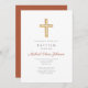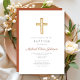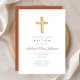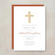 Personalised Religious Cross Terracotta Script Baptism Invitation.