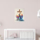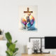Happy Easter with this cute easter bunny or rabbit, colourful easter eggs and a cross.