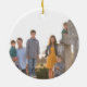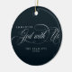 An elegant religious Christmas tree family keepsake. This design features "Emmanuel God with is" is in a mix of white script and serif font on a navy blue background. Customise with your own message and favourite portrait photo.