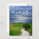 Religious sympathy postcard with a winding white dirt road typical for the path of life under dark clouds in the sky with the psalm 16:11 text 'You make known to me the path of life; you will fill me with joy in your presence, with eternal pleasures at your right hand'