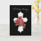 This graceful religious sympathy card offers a meaningful way to express condolences for the loss of a loved one. Featuring a white cross adorned with red roses, symbolising resurrection and eternal life, the design is set against a serene black background. The front reads, "In Loving Memory," and the inside offers a comforting message of peace, faith, and solace. With its simple yet profound symbolism, this card provides a thoughtful expression of sympathy, offering support to those grieving and reflecting on the promise of everlasting love and life.