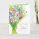 A pretty floral religious card for Valentine's Day featuring a scripture from the Bible book of 1 John 4:16 and decorated with a flower bouquet of bright pink, blue, and purple flowers hand painted with watercolor. On the inside is text that you can edit to fit your needs and another flower.