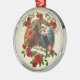 Featuring a beautiful traditional religious custom designed image of the Blessed Virgn Mary and St. Joseph adoring the Baby Jesus accented with red roses and gold filigree..