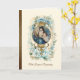 Featuring a beautiful traditional Catholic religious vintage image of the Blessed Virgin Mary with the Baby Jesus, Madonna of the Street, to be used as a beautiful expression of Sympathy. A blue floral bouquet accents the background.