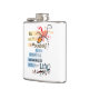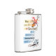 The flask itself is fine. It’s a cheap flask, obviously bought in bulk, however am prepared to overlook that. Given that it is a personalized item, I would have liked to have seen gift boxing instead of the generic packaging. Terrible printing, and/or quality. It’s a cheap, tacky vinyl. It is not cut straight and is also applied in a way that it is overhanging the bottom, causing the glue to catch on items and it will eventually roll and tear, damaging the wrap.