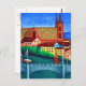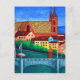 A colourful painting scene of Basel's beautiful Munster along the Rhine River with a view of the middle bridge.