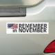Remember in November bumper with flag Sticker