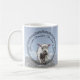 This mug features a digital depiction of a lamb displayed over a photo of clouds in a blue sky. A floral border encircles the design. The words, "This Easter Remember the Lamb of God," curves around the top.