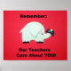 Elephant with ribbon tied around it's trunk, and message for students: "Remember: Our Teachers Care About YOU!" Perfect poster for schools.