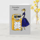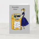 Remember when is a hand drawn retro card of a young lady playing a juke box. She even has the wide skirt and buster brown shoes. The words on the inside can be changed.