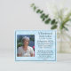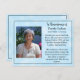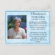 A card to hand out at funerals, memorials or celebrations of life. Personalised photo, text and prayer on the back which can all be customised. And if you have to buy these, I just want to say, sorry for your loss. Prayer card. Blue background and prayer hands on back.