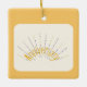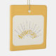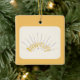 This design is featuring "Anniversary" in colours of yellow and black spikes. Tiny hearts as spikes. A golden backround represents a golden anniversary. A white feathered opaque is inserted in the centre of the ornament. This ornament will make a beautiful gift to your loved one for 50 years of marriage. These are available in assorted shapes. Customise with your own information on the back of the ornament.