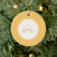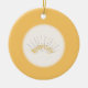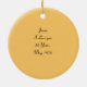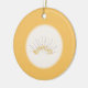 This design is featuring "Anniversary" in colours of yellow and black spikes. Tiny hearts as spikes. A golden backround represents a golden anniversary. A white feathered opaque is inserted in the centre of the ornament. This ornament will make a beautiful gift to your loved one for 50 years of marriage. These are available in assorted shapes. Customise with your own information on the back of the ornament.