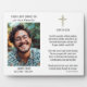 Memorial sign or remembrance plaque featuring a photo of your loved one, the sentiment "your light shines on in our hearts," their name and the years they lived. The design includes a poem called "Gone too Soon" by Tania Chapman, which you are welcome to use or, you can replace it with a psalm, verse, hymn, reading, excerpt from the eulogy, or any other wording you choose. The plaque can be used as decoration at your celebration of life or funeral service and thereafter displayed at home as a remembrance keepsake. Please browse my Funeral and Memorial Service Sets for co-ordinating products and alternative designs.