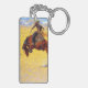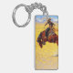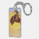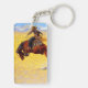 Keychain featuring Frederic Remington’s oil painting Cold Morning on the Range (1904). A cowboy rides a brown and rambunctious horse. A great gift for horse lovers and the Old West.
