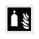Bottle with a knob handle on top and flame icon on red background.