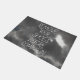 This is a cool dark cloud print large doormat that says 'REMOVE YOUR SHOES BEFORE COMING IN' in big white letters. Hopefully, everyone will be barefooted already when you open the door!