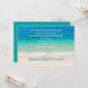 Renewing vows ceremony invitations with a tropical ocean background. For special anniversaries to be celebrated by the sea, easily customise the templates in white and sea green text. All invitation text is at the top portion and is printed in white over blue and green ocean water. Include reply information to simplify things. The names of the couple will be printed at the bottom in the sand. Reverse is solid sea glass green colour. Not all paper sizes will work correctly with this design. It will be printed as it appears in the preview - don't let text get near the edges.