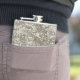 The flask itself is fine. It’s a cheap flask, obviously bought in bulk, however am prepared to overlook that. Given that it is a personalized item, I would have liked to have seen gift boxing instead of the generic packaging. Terrible printing, and/or quality. It’s a cheap, tacky vinyl. It is not cut straight and is also applied in a way that it is overhanging the bottom, causing the glue to catch on items and it will eventually roll and tear, damaging the wrap.