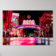 An artistic print of Reno's Nevada's famous Arch bathed in nighttime neon glow.