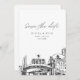 Capture the fun of Reno and invite your guests in style with this photo save the date invitation. The front showcases a stunning sketch, setting the perfect tone for your wedding day. Add your own photo to the back and customise the text to make it your own. Enter the Zazzle design tool for further customisation.