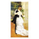 Renoir Dance in the City print. Oil painting on canvas from 1883. One of Pierre-Auguste Renoir’s famous dancing couples paintings, Dance in the City depicts a woman with light brown hair swaying with a man in a tuxedo. The woman wears a pink flower in her hair, long white gloves, and a flowing white silk gown. The couple appears to be dancing in a fancy hall adorned with palm fronds and tropical plants. A pretty gift for fans of Renoir, dance, romantic couples, and impressionism.