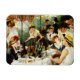 Renoir Luncheon of the Boating Party magnet. Oil painting on canvas 1881. Luncheon of the Boating Party is one of Pierre-Auguste Renoir’s most beloved paintings. The work features the artist’s friends dining on a balcony at the Maison Fournais near the Seine River in Chatou, France. The table is stocked with fruit and wine, which is surrounded by multiple diners, many of whom are famously wearing hats that serve as multiple focal points of light. A woman plays with a small dog and two men wearing sleeveless shirts work to frame the action of the scene. A great gift for fans of Renoir, impressionist panting, French art, and lively dining scenes.