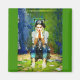 A young woman sits on the ground with her head in her hands, surrounded by vibrant and abstract colours of green and blue. She appears contemplative, creating a mood of introspection and solitude. Digital Art