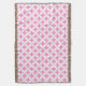 A repeat circular quarters cut out style patterned throw in light pink and white, by Sarah Trett. Would look great in a bedroom, lounge room.