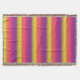 A repeat three colour bright dogtooth stripe patterned throw in lime green, purple and pink, by Sarah Trett. Would look great in a bedroom, lounge room.
