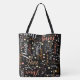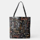 Add your own name to the template to easily create a nice pattern printed across the black background of a stylish tote. Your own name, or any other special word, repeated in different font styles and colours, mixed with small, delicate hearts of love sprinkled between the names. An elegant gift idea for a romantic girl...