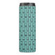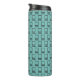 This thermal bottle has a mid-century modern design of squares with a line and a line of circles, all black, repeating across the design on a field of seafoam. If you like the design but prefer different colours, message me.