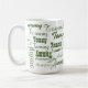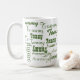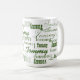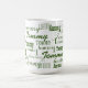 Simple and nice personalised mug. Create your own coffee-mug... it's easy and fun to do... your own name printed in green font styles all over the mug.