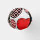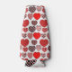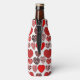 This bottle cooler has a Valentine’s design of repeating hearts with different graphics inside on a field of white.
