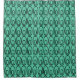 This shower curtain has a mid-century modern design of a small oval inside a bigger oval on a field of mint green.