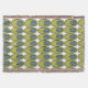 This throw blanket has a mid-century modern design of repeating olive green ovals with grey ovals inside.