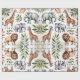 Repeating pattern of lions, giraffes, and elephant wrapping paper