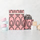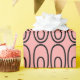 This wrapping paper has a mid-century modern design of a small oval inside a bigger oval on a field of salmon.