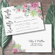 A tropical design that embraces the tranquil beauty of nature mixed with a playful edge that is sure to help you have fun. A blend of calming green tropical leaves, including banana leaves, palms, monstera leaves, and pink princessa plants, alongside soothing purple-pink orchid flowers and protea bloom, intertwined with various other green foliage. Enhanced by a modern handwritten font, this enchanting print radiates charm and sophistication. This versatile design brings a sense of tropical paradise to any setting or special occasion, making it perfect for a destination wedding, or just when you want to add a tropical flare. Watercolor Reply RSVP Floral Tropical Palm Wedding Enclosure Card