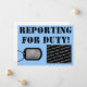 Announce the arrival of your sweet little boy with this cute design. This Reporting for Duty birth announcement is fully customizeable with your new son's photo and birth stats.