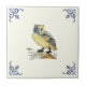 Repro 1700s Antique Hand Painted Delft Owl Ceramic Tile