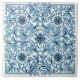 Shades of blue on white in an elaborate design make this an outstanding Victorian tile. Reproduced from an original antique tile by Minton China, one of the finest producers of tiles in the 18th and 19th centuries.