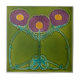 Reproduction of a circa 1900 tile by Marsden. Three stylized art noveau flowers in a red violet purple with pumpkin shaded centers and turquoise flourishes on green.