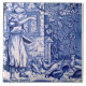 This is the Wedgwood month of August tile in the blue and white calendar set and shows a girl feeding hens. Reproduced from a circa 1885 series of tiles representing the months of the year by Josiah Wedgwood & Sons.
