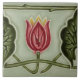 Reproduction from a tile made in Germany around 1900-1905. Jugendstil style is a type of art nouveau that foreshadowed the art deco movement. Rich, colorful and vibrant for a bold design of a pink and yellow floral motif on a sage green background.