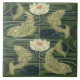 Reproduction from a tile made in Germany around 1900-1905. Jugendstil style is a type of art nouveau that foreshadowed the art deco movement. Rich, colorful and vibrant for a bold design of fishes in a pond with waterlilies, all in olive green and sage green.