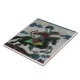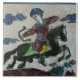 A wonderful handpainted tile with a man riding a horse and aiming a bow at, presumably, his prey. Lovely colors of plum, gold, burgundy, turquoise, black, and white. All reproduced from the antique original and custom printed for you. Looks great as a wall accent tile, framed and hung as art, or placed on an easel on a shelf. Can also be used as a trivet, coaster, wall tile, or for craft projects.